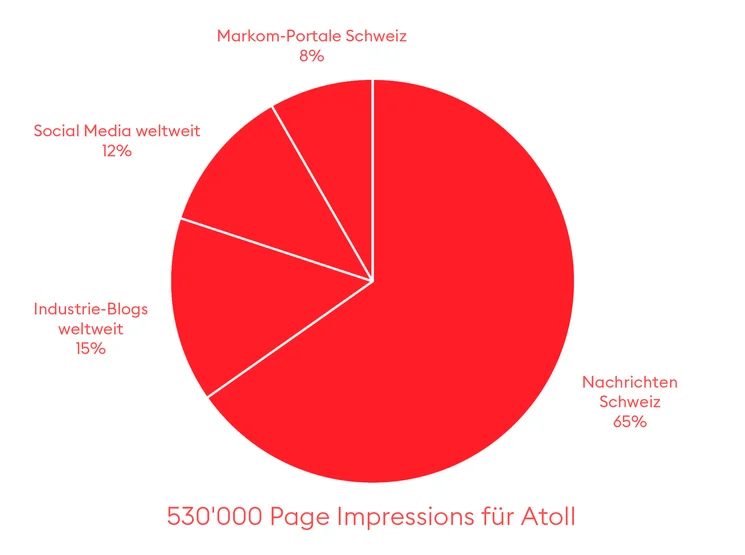 Wie sich zeigte, war das auch ein Glücksfall für die Bekanntmachung von Atoll. Berichte über unsere Innovation wurden weltweit mehr als eine halbe Millionen mal angesehen, darunter auch von mehreren tausend Personen in unserer Kernzielgruppe: Marketingverantwortliche in Schweizer Grossunternehmen und KMU.