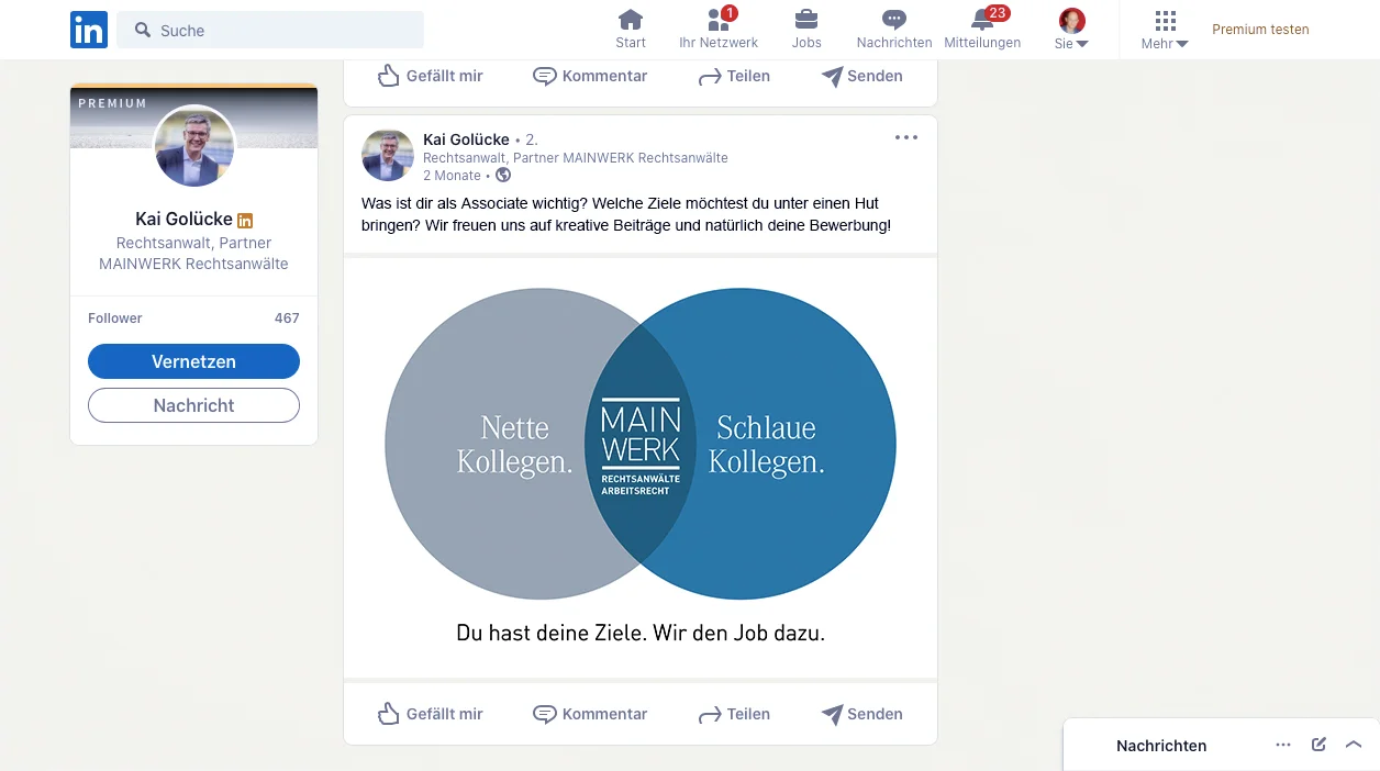 Genau dort, wo sie sich heute bewegen: auf LinkedIn und XING. Juristen haben eine hohe Affinität zu beruflichen Online-Netzwerken und nutzen diese sogar gerne in ihrer Freizeit.