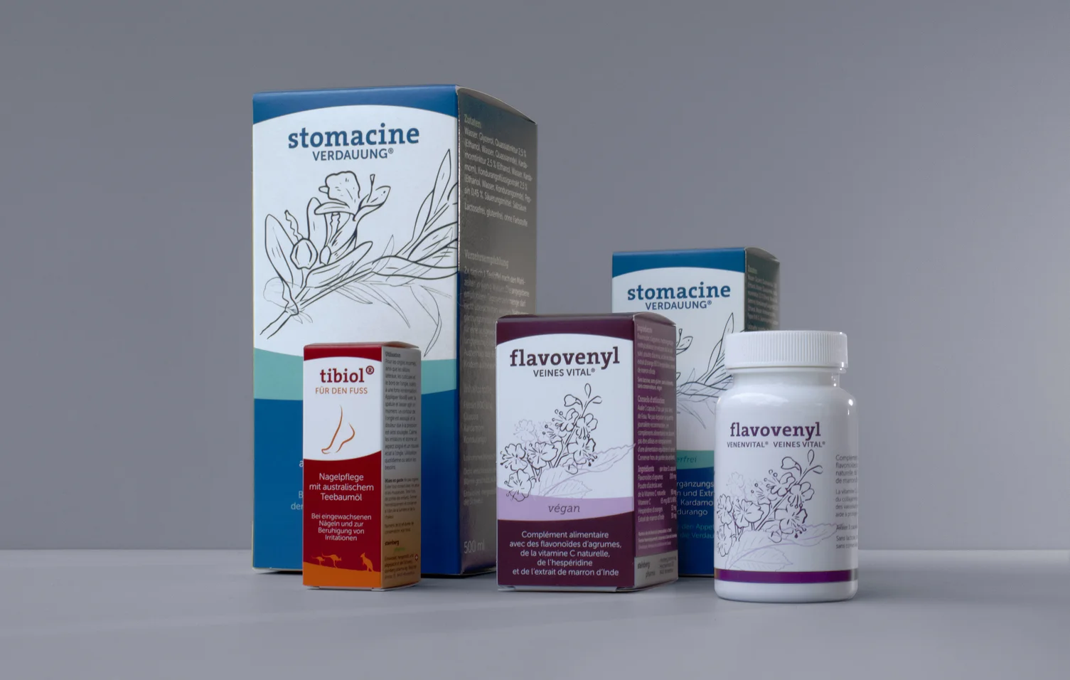 Für Steinberg Pharma schufen wir ein Packaging, das die erfolgreichsten Klassiker nicht nur unter einem gemeinsamen gestalterischen Dach versammelt, sondern auch eine weniger medizinische Aura verströmt. Und nun ist auch die pflanzliche Basis der Wirkstoffe sofort erkennbar.